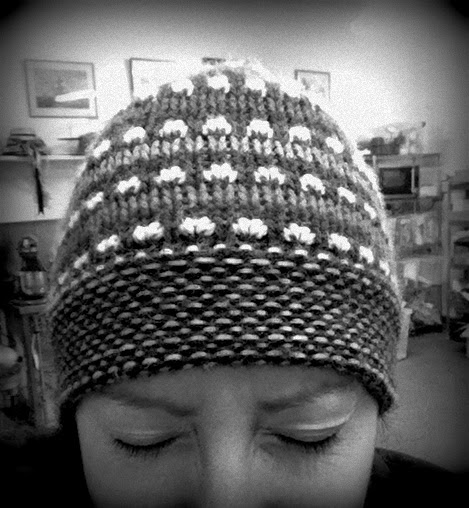 | A fine alpaca hat my sister brought me from Peru. It limits the hairstyle options, but one must remember one's priorities. |